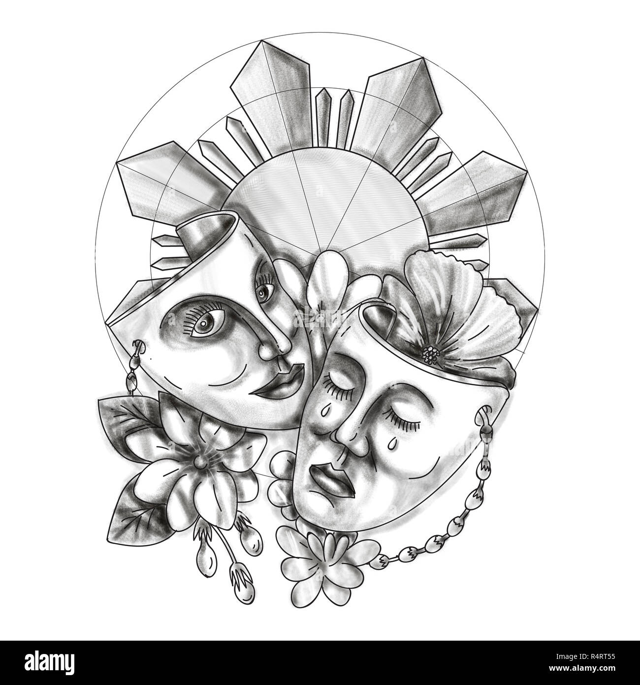Drama Mask Hibiscus Sampaguita Flower Philippine Sun Tattoo Stockfotografie Alamy